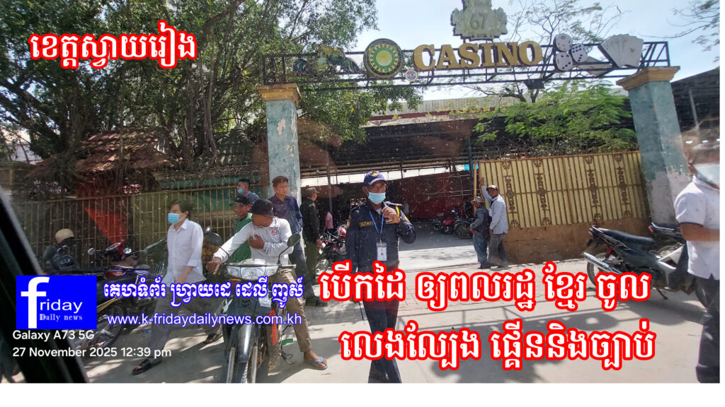 ខេត្តស្វាយរៀង៖ មហាជនបានរិះគន់ ថា កាស៊ីណូ៦៧ បើកល្បែងបញ្ជល់មាន់ ហើយបើកឲ្យប្រជាពលរដ្ឋខ្មែរចូលលេងភ្នាល់ល្បែងជល់មាន់ដោយសេរី ផ្គើនគោលនយោបាយភូមិឃុំ/សង្កាត់មានសុវត្ថិភាពដែលរាជរដ្ឋាភិបាលចេញបទបញ្ជាឲ្យរដ្ឋបាលថ្នាក់ក្រោមជាតិចុះបង្ក្រាបបិទល្បែងស៊ីសងគ្រប់ប្រភេទដើម្បីសុវត្ថិភាពសន្តិសុខសណ្តាប់ធ្នាប់នៅមូលដ្ឋាន ជាពិសេស កំពុងបំពានច្បាប់នៃព្រះរាជាណាចក្រកម្ពុជា ដែលមិនអនុញ្ញាតឲ្យពលរដ្ឋខ្មែរ ចូលលេងល្បែងសុីសង ក្នុងកាសុីណូ ឡើយ ។ មហាជនលើកឡើងនេះកើតឡើងនៅវេលាម៉ោង១និង០០នាទីរសៀលថ្ងៃទី២៧ ខែវិច្ឆិកា ឆ្នាំ ២០២៥ នៅភូមិស្រម៉ឃុំសំរោងស្រុកចន្ទ្រា។ ប្រជាពលរដ្ឋស្រុកចន្ទ្រាបានលើកឡើងថា ពួកគាត់មានការណ៍ព្រួយបារម្ភពីសុវត្ថិភាពសន្តិសុខគ្រួសារដោយប្តីនិងកូនចៅពួកគាត់បាននាំគ្នាទៅផ្សងសំណាងលេងល្បែងជល់មាន់នៅក្នុងកាស៊ីណូ៦៧ គេបើកបញ្ជល់មាន់ ហើយឲ្យខ្មែរចូលលេងដោយសេរីព្រួយបារម្ភៈពេលប្តីនិងកូនៗពួកគាត់ចាញ់ល្បែង ត្រឡប់មកវិញបង្កអំពើហិង្សាក្នុងគ្រួសារ ប៉ះពាល់ដល់ជីវភាពគ្រួសារ អសន្តិសុខ មានចោរលួចចោរប្លន់ ។ បើតាមសមត្ថកិច្ចនគបាលស្រុកចន្ទ្រា (សុំមិនបញ្ចេញឈ្មោះ) បានប្រាប់អ្នកសារព័ត៌មានយើងថា ការស៊ីណូ៦៧ មានទីតាំងនៅច្រកទ្វាតំបន់ព្រំដែនសំរោង ស្ថិតនៅភូមិស្រម៉ ឃុំសំរោង ស្រុកចន្រ្ទា ត្រូវបានសមត្ថកិច្ចថ្នាក់ជាតិបានចុះទៅបិទម្តងរួចហើយ ដោយអនុវត្តតាមបទបញ្ជាពីរាជរដ្ឋភិបាល បិទបាន១រយៈ ស្រាប់តែលោកបានទទួលព័ត៌មានពីអាជ្ញាធរ Read more