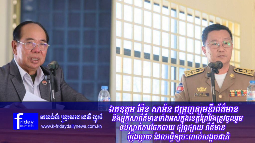 ឯកឧត្ដម ម៉ែន សាម៉ន ជម្រុញឲ្យមន្ទីរព័ត៌មាន និងអ្នកសាព័ត៌មានទាំងអស់ក្នុងខេត្តព្រៃវែងត្រូវចូលរួមទប់ស្កាត់ការចែកចាយ ផ្សព្វផ្សាយ ព័ត៌មានក្លែងក្លាយ ដែលធ្វើឲ្យបះពាល់សង្គមជាតិ